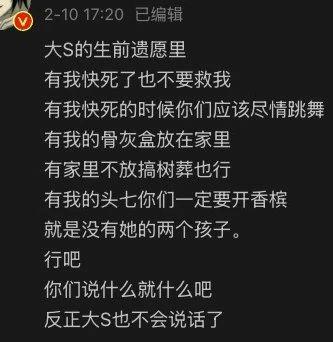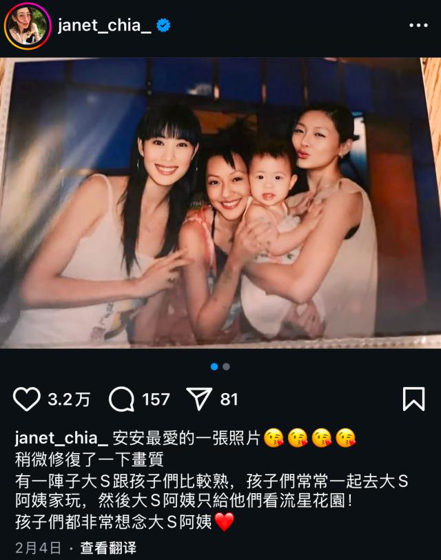 2 月 4 号码,说孩子思念大 S 这样,并且发出大的 S 生前照片。