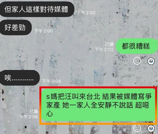 葛斯齐来搅拌:S 妈妈给汪小菲打电话让他照顾孩子,被媒体写争家产后,S 家里没有为他说话。