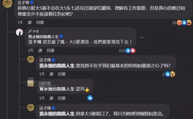 愤怒地批评贾永婕做秀,在大 S 头七穿红戴绿。