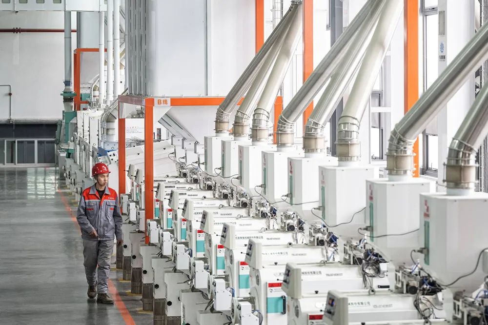 2月13日,位于潜江市的巨金米业有限公司智能生产线高速运行。该公司是潜江市第一家省级5G工厂,年生产能力达到35万吨。整个生产过程高度自动化和智能化,从原粮到成品包装。在12000平方米的车间里,只有三个工人可以有序运行。(任勇 摄)
