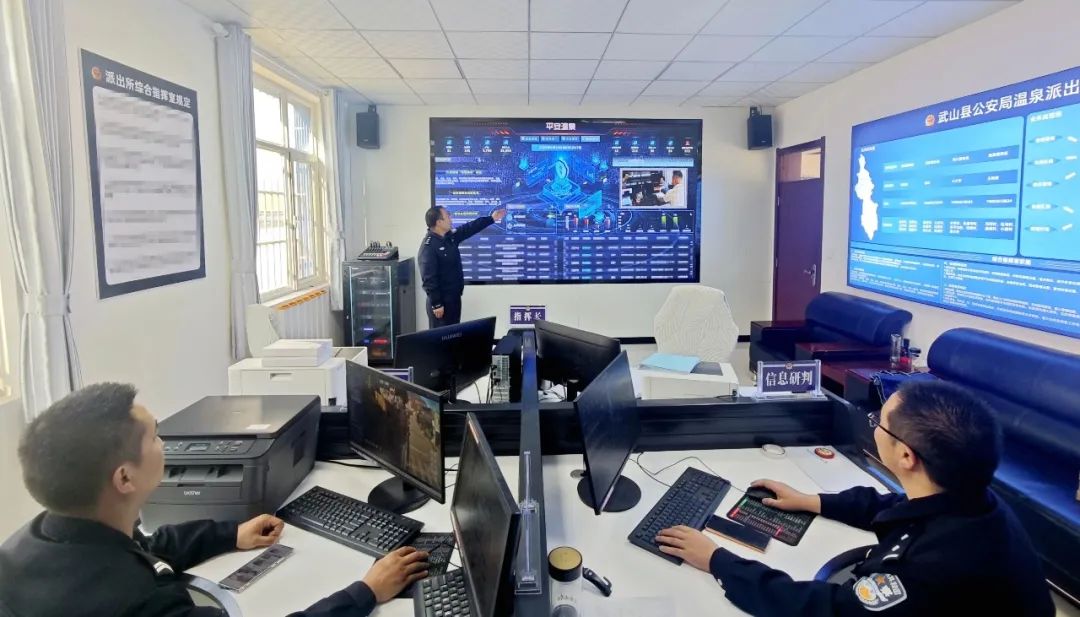 温泉派出所坚持在预防警务、结合警务、主动警务等方面下功夫,深化大数据应用,搭建“安全温泉”信息平台,设置“机动车逾期不检”等功能板块。接入辖区重点路段等各类信息资源,在综合指挥室展示动态调度屏幕,推动“交所合一”机制紧密结合,有效提高工作效率。