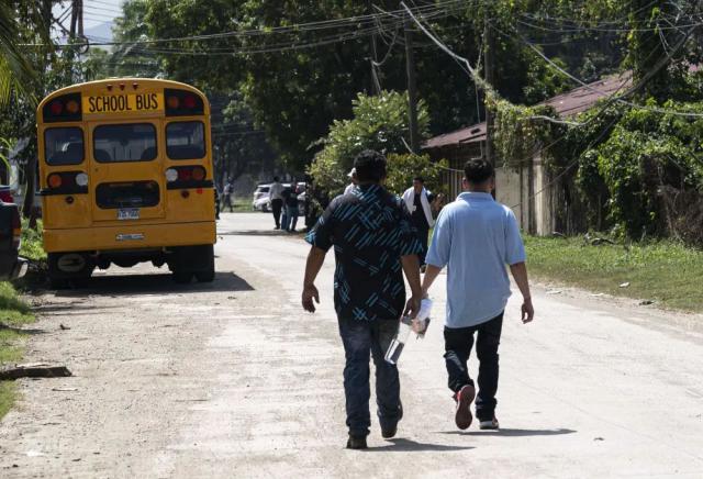 2 月 14 当天,在洪都拉斯西北部城市圣佩德罗苏拉,返乡移民乘坐返乡移民援助中心的公交车前往车站。新华社(戴维 摄)