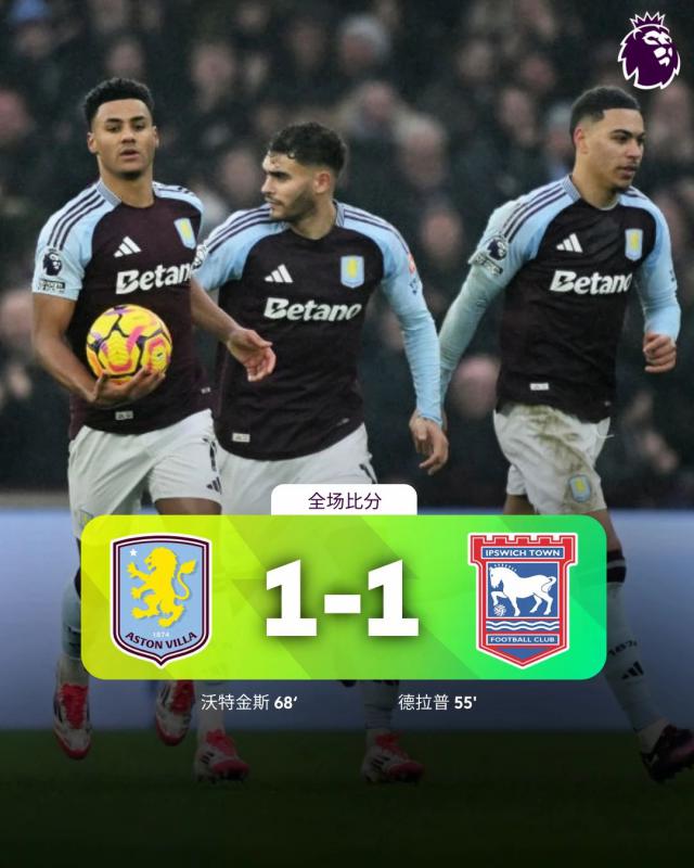阿斯顿维拉 1-1 伊普斯维奇