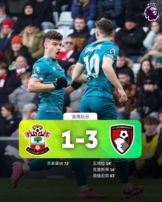 南安普顿 1-3 伯恩茅斯