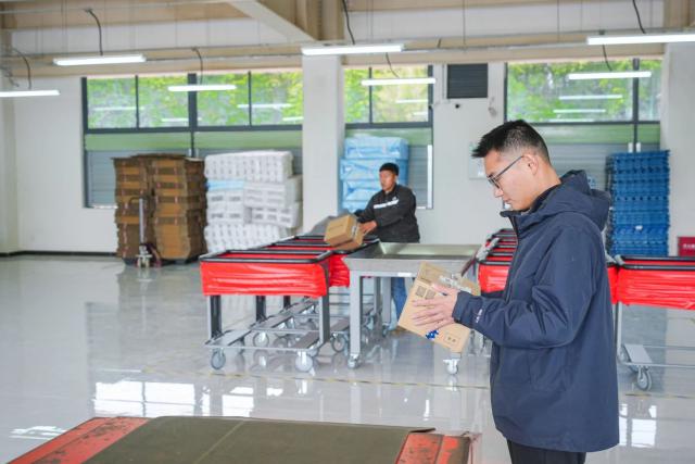 一楼为顺丰快递智能网点,配备分拣机、皮带机、分拣台等智能产品。