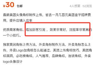 线上 Logo 还可以造假,有商家直接去“ ps 大神”,花 30 块状可以把网上店面放在一起 Logo 角标 P 成为“必吃榜”、“人气推荐”、“连锁角标”,甚至可以代上传到平台页面。