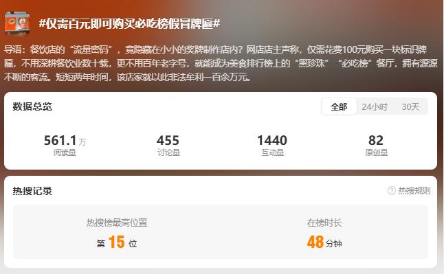 但是最近却被曝出“只要百元就可以买到必吃榜上的假牌匾”。