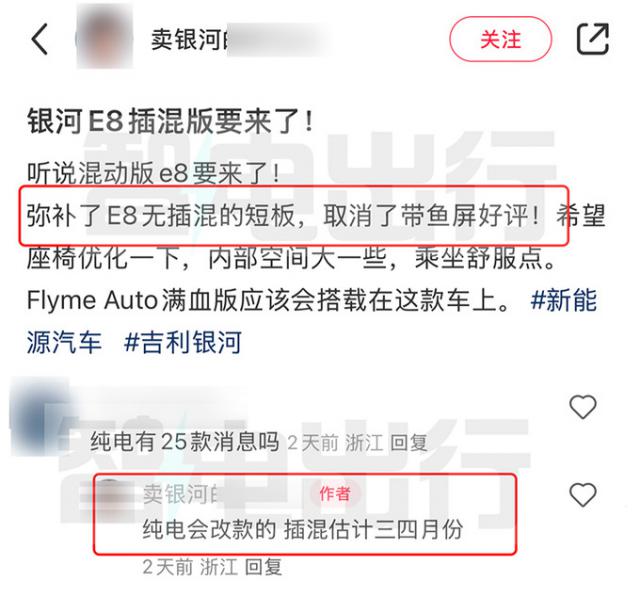 吉利银河销售:E8插混最快三月上市!是否放弃了“带鱼屏”的认可?