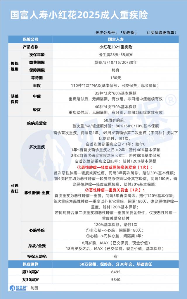 爸爸还为大家重点推荐国富人寿小红花。 2025 成人大病保险: