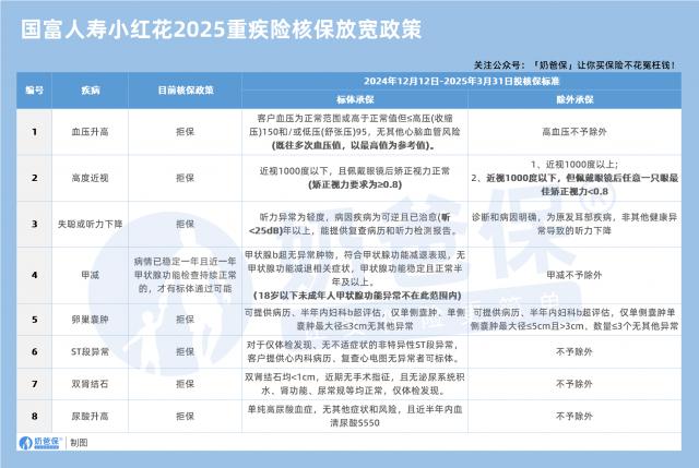 值得注意的是,国富人寿小红花 2025 近日,成人重疾保险出台了放宽核保政策。