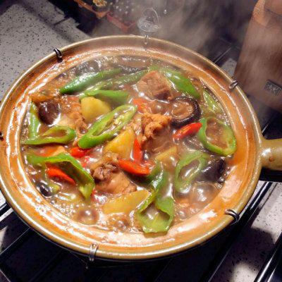 11、土豆煮熟后加入青椒小米煮熟。 2 分钟