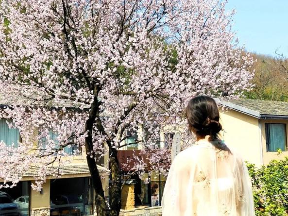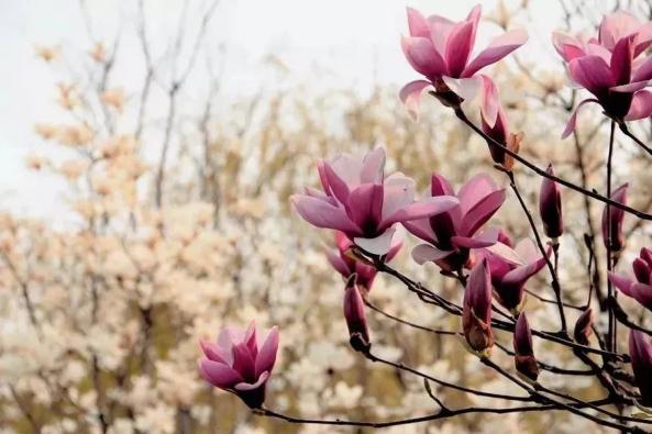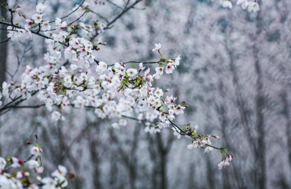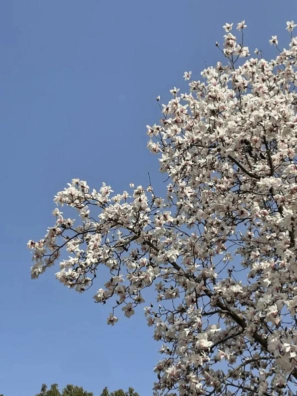 春日温暖的阳光下,雪白的花瓣晶莹剔透