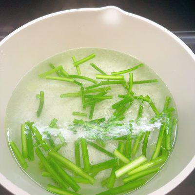 3、开水焯一下,几十秒钟就可以了,捞出来放入冷开水中备用。