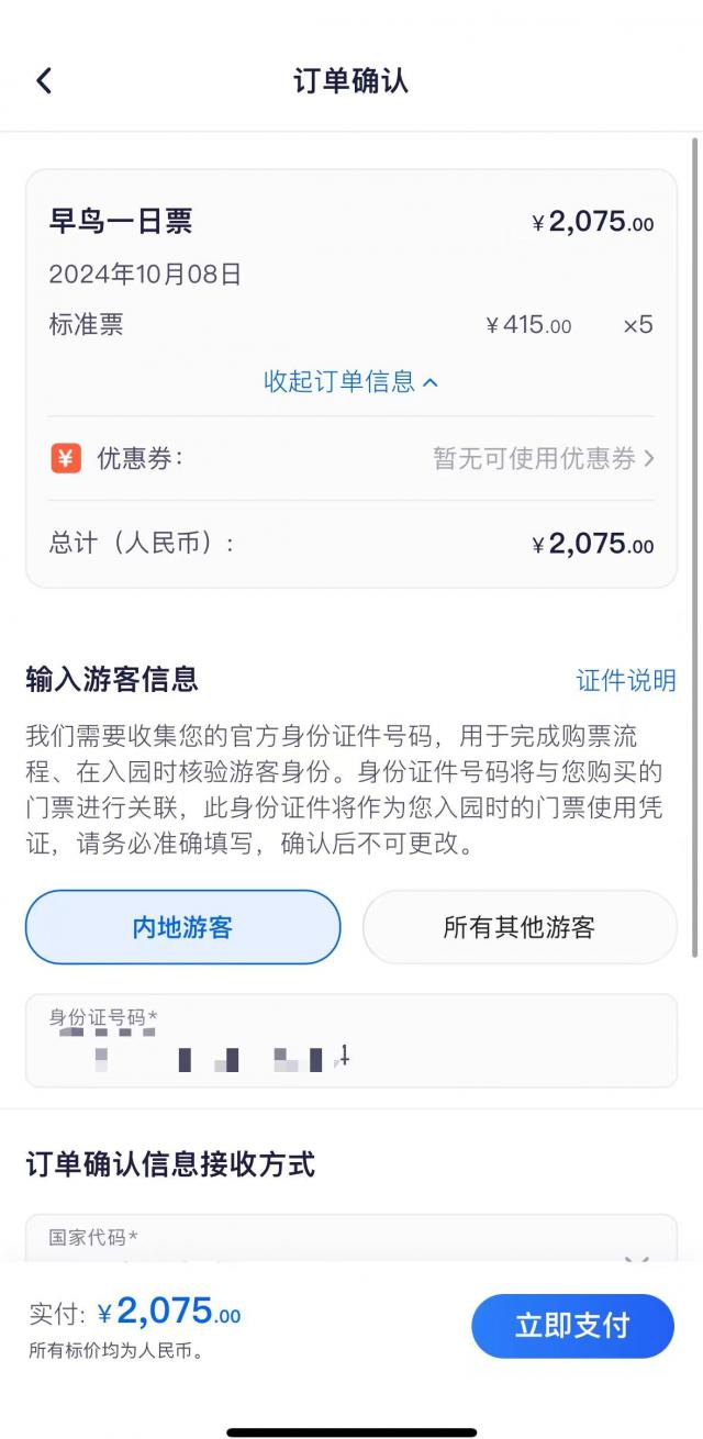 游乐场所,如北京环球影城在预订通知中显示,门票仅限绑定有效身份证或本人使用。