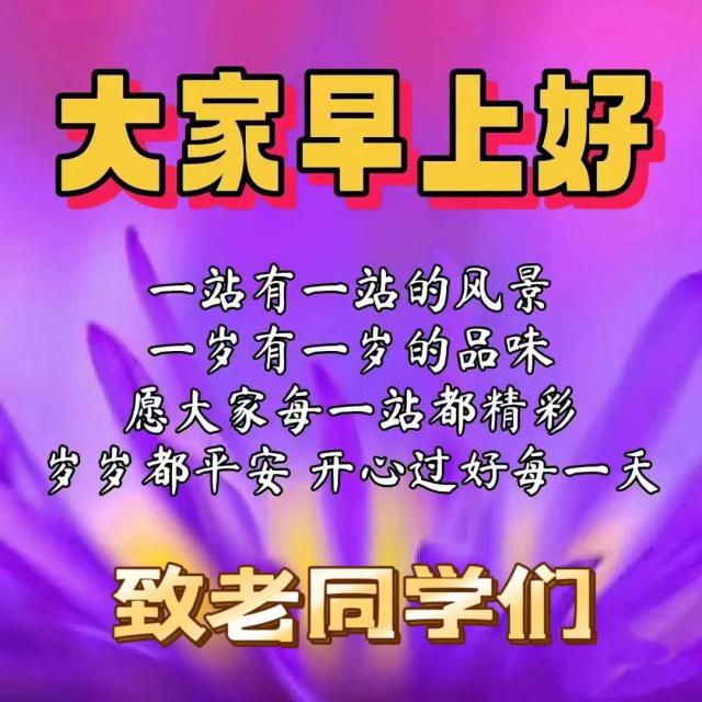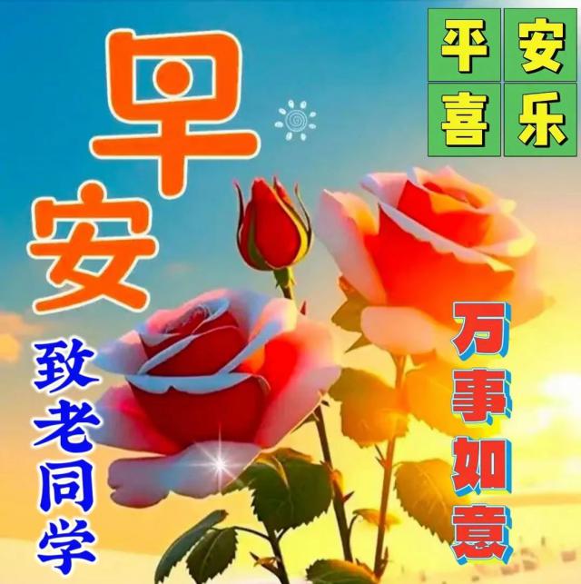 早上好,每天安全;问候,健康长寿;祝福,永远幸福!生活知足,幸福快乐,互相关心,每天祝福,你我安全,如愿以偿。早上好!老同学!