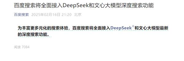 百度搜索宣布:将全面访问DeepSeek