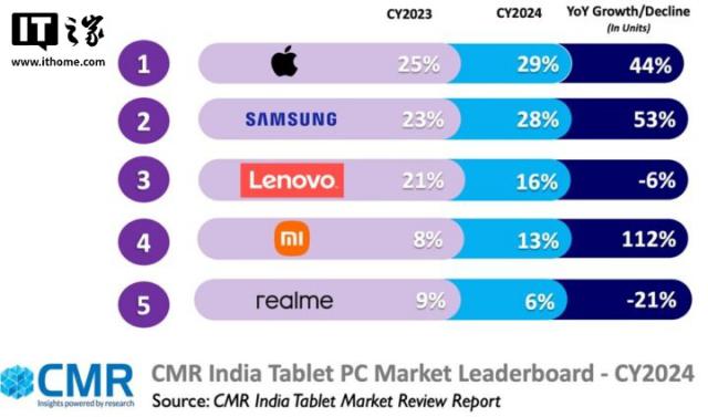 IT 世家 2 月 17 日消息,据 CyberMedia Research(CMR)最新发布的 2024 年度印度平板电脑市场分析报告显示,三星在该市场取得了显著进展。