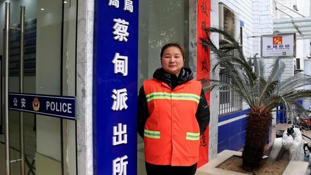 在蔡甸街派出所门口,彭会芹