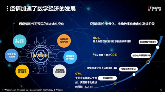 在当今后疫情时代,企业成长发展的新引擎是什么?毫无疑问,数字化和数字革命是公司非常重要的新引擎。疫情加速了数字化转型,从下图可以看出: