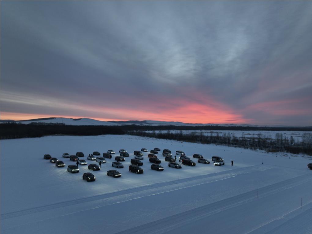 内蒙古牙克石室外温度-30℃。在中国汽车中心的冬季测试现场,测试车辆穿梭在覆盖冰原的雪地上。冰雪中留下的车辙记录了中国汽车从“跟随”到“领先”的坚实步伐。