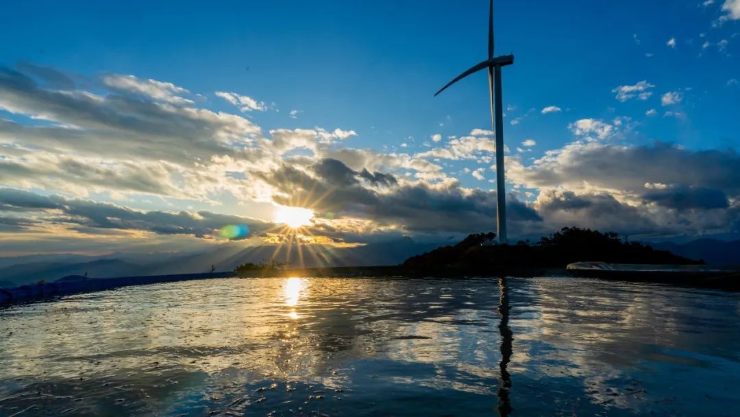 仲冬时节,国家首批大型风电光伏基地项目——中国投资集团雅邈江公司腊巴山风电场一台台风机屹立不倒,迎风转动,与日出、云海相得益彰,形成一幅美丽的画卷。