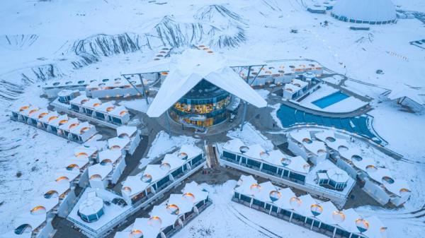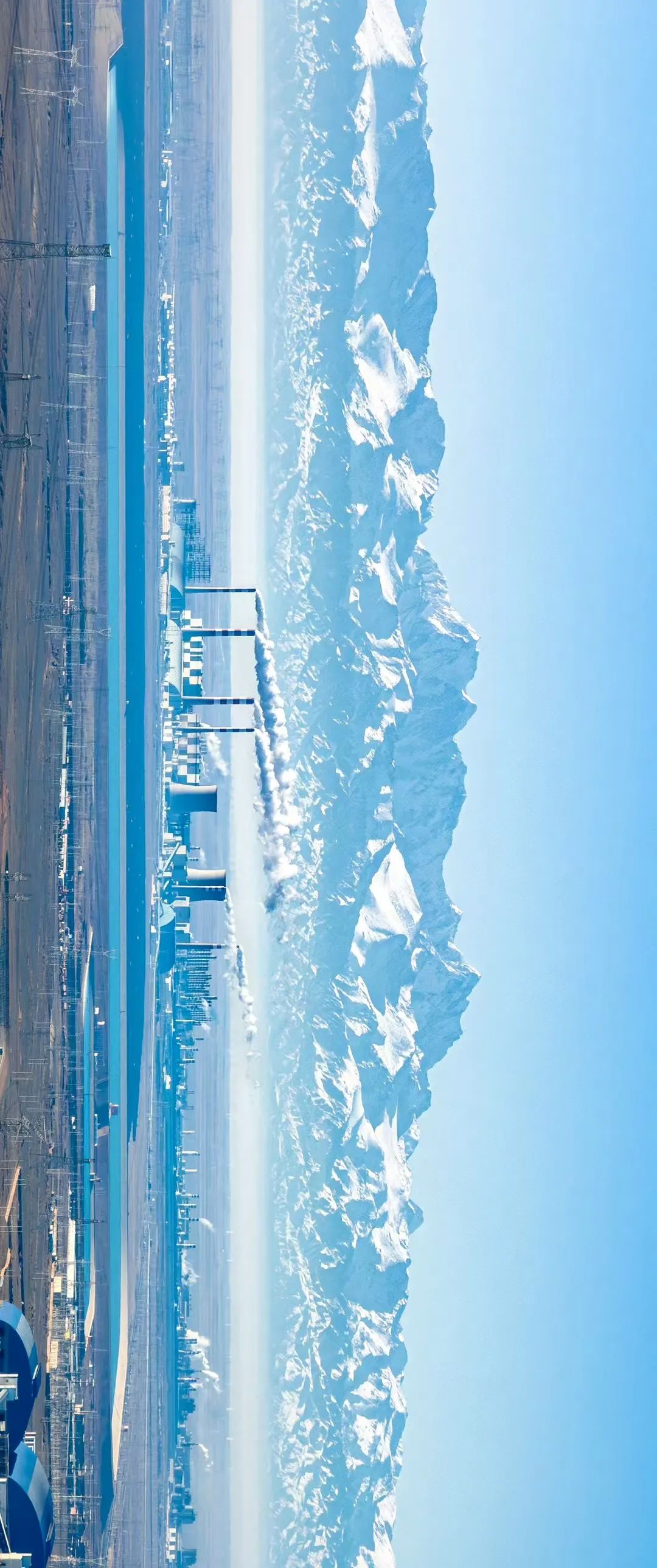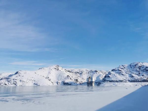 中核集团“新疆三峡”阿尔塔什水利枢纽静静地矗立在巍峨的昆仑山上的叶尔羌河畔,像童话世界一样被薄薄的雪层装饰。