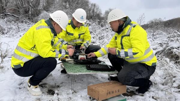 银白色世界里的一抹“荧光绿”,中国移动人民用心守护着千家万户的网络畅达。