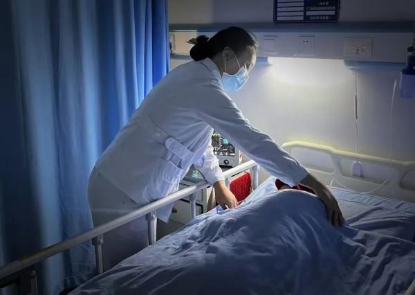 严冬深夜,通用技术集团通用医疗所属成飞医院神经内科值班护士正在对病房进行常规夜间巡视。在一名脑血管造影患者的病床旁,她在确定患者指标无异常后,小心翼翼地为患者盖好被子,用专业和温暖驱走患者的痛苦和凉爽。