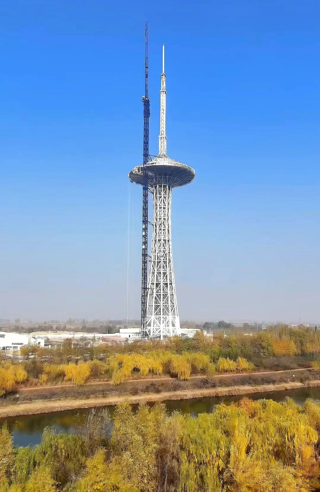 中国电气设备所属山东电气青岛豪迈承建的宁夏广播电视塔,冬日晴空下,电视塔巍然屹立,与远处贺兰山相呼应,展现出壮丽的身姿。