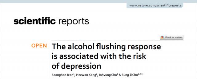 6.Jeon S, Kang H, Cho I, Cho SI. The alcohol flushing response is associated with the risk of depression. Sci Rep. 2022;12 ( 1 ) :12569. Published 2022 Jul 22. doi:10.1038/s41598-022-16276-2