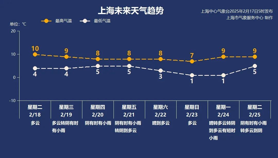二月十八日(星期二):阴天,4~10℃