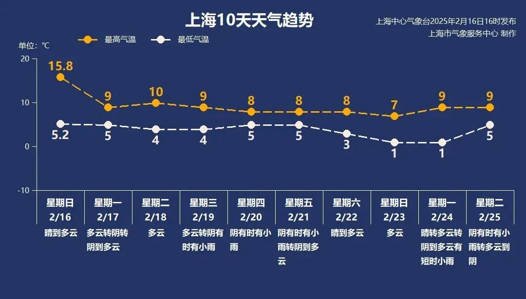 本周初受冷空气影响,上海天气以多云天气为主,最高气温降至9~10℃。由于周三至周五早期高空槽的影响,申城将有一个小雨天气过程,气温在4~9℃,雨水加持下,这几天体验比较潮湿。从周五开始冷空气的影响下,雨止转阴至多云。一般来说,虽然本周冷空气不是很强,但是气温被压得死死的。没有机会露头。每个人都应该采取措施防止感冒。