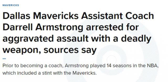 北京时间 2 月 17 据达拉斯媒体报道,消息来源证实,独行侠助理教练达雷尔 - 在当地时间周六,阿姆斯特朗因使用致命武器严重伤害他人而被捕。
