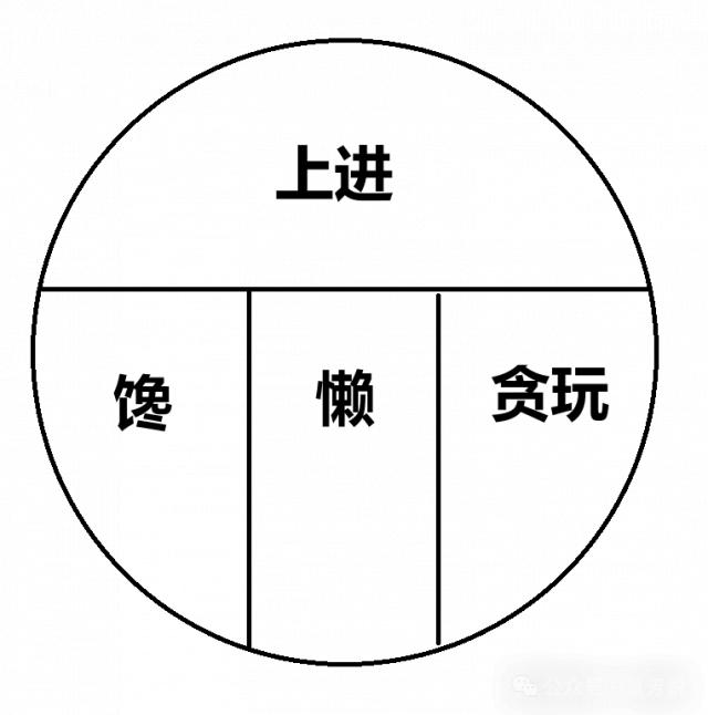 我自己认为:如果上进的话 百分之四十,贪吃、懒惰、贪玩各占百分之一。 20%,或许是非常好的比例。进步的分量可以成功打败天性中的贪婪、懒惰和贪玩,但不超过这些天性的总和。只有这样,你才能总是有进步的力量,但你不会走得太远。
