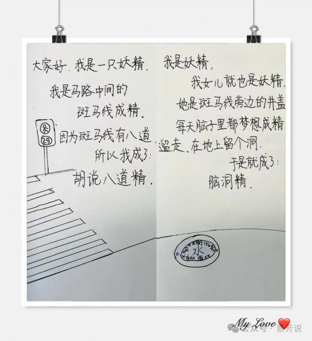 有一次,我编了一个现代万物成精的故事,讲的是路上的斑马线成精,因为有八条路,所以成了“胡说八道精”。从那以后,我被提升为“胡说八道精”。