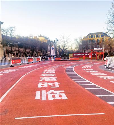 “年轻人喜欢网约车,也是旅游的主要群体。以前每个假期,总会有车辆拥堵、秩序混乱的场景,尤其是交通管制的时候,河北路和成都路的交叉口经常因为随意停靠运营车辆而瘫痪。经过多次调查,我们研究了设置临时落客区的措施。"大队负责人介绍,该地区已经设置好了。 3 临时乘客通道,路面刷红漆,印有“临时乘客通道,即停车即走”字样。车道用白色栅栏隔开,车辆互不影响。栅栏上还挂着一个标志,“车道很拥挤,所以请不要在这里呆很久。”路边有一个摊位,是游客上下车的等候区。