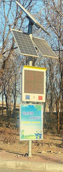 在外环光荣道和大明道之间,路边有一张“请勿逆行”的交通安全电子卡,上面有两块太阳能电子板,靠收集太阳能为电子卡供电。走近电子牌,可以听到它在循环播放“开电动自行车请戴头盔”的口号。近日,记者在现场看到,一名男子驾驶电动自行车经过这里,没有戴头盔。前面的交通指示灯变成了红灯。他停下来等灯。听到电子卡播放的提示后,他向前走,拿起放在篮子里的头盔,戴在头上...记者从市公安局北辰分局了解到,外环线、韩家墅市场、津霸公路等交通部门。 20 这种太阳能交通安全电子牌安装在交通违章相对集中的道路上,经过一段时间的运行,取得了一定的效果。