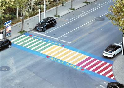 孩子们对颜色特别敏感,喜欢五颜六色的世界。在与平区南市街道周围,几个路口的斑马线不再是枯燥的白色,而是五颜六色的。这些斑马线是专门为了吸引孩子的注意力而设置的,让他们养成“行人过马路一定要走斑马线”的好习惯。