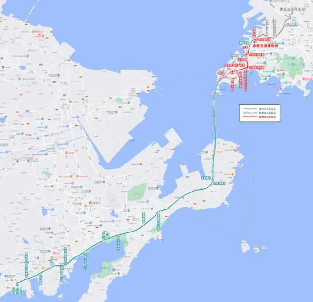 下降:西海岸汽车总站、凤凰山路地铁站、西部办公中心、滨海新村、石油大学南门、上流汇、铁路青岛站费县路、道路交通博物馆。