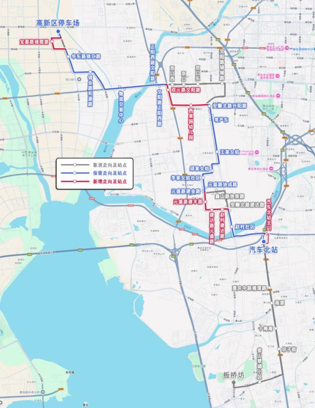 线路主站为高新区停车场,无变化;副站由板桥坊调至汽车北站。调整后为高新区停车场-汽车北站。