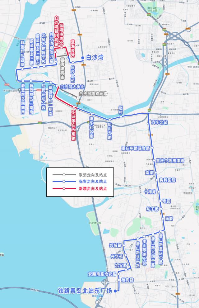 该线路主站白沙湾,青岛北站副站铁路东广场,无变化。
