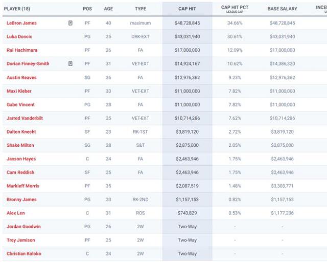 湖人目前 15 一份正式合同如下: