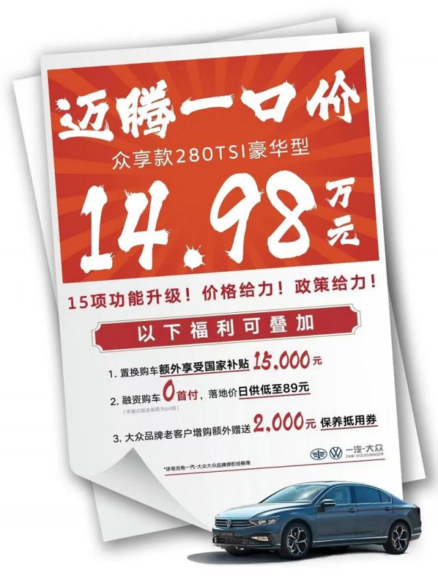 推出一口极具吸引力的价格政策,ID.4 CROZZ 2025 纯享版一口价 14.99 一万元,长续航 PURE 版一口价仅 18.59 一万元,还有六重买车礼品,包括买车、养车、用车全生命周期。1 月 9 迈腾众享款在日本重磅上市 280TSI 豪华版,升级 15 项目设备,而终端一口价只有一口价格。 14.98 万元。与此同时,紧抓春节窗口期,启动“春节购车节”限时特惠。探岳、宝来等主要车型分别由 13.98 万元、7.98 1万元起售,线上订购指定车型可参与抽奖,无上无上。 12025 元鸿运当头大奖,优选车型 0 首付款,低日供,全系以旧换新补贴无上 1.6 诚意政策,如万元,为顾客提供了丰厚的福利。