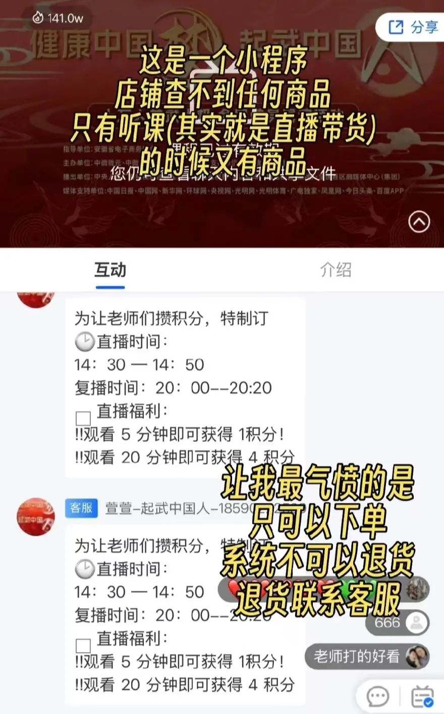 听了半个月的时间,工作人员把老人拉进微信群,让他们看指定的直播,说打卡就能拿到优惠券,还有红包抢。