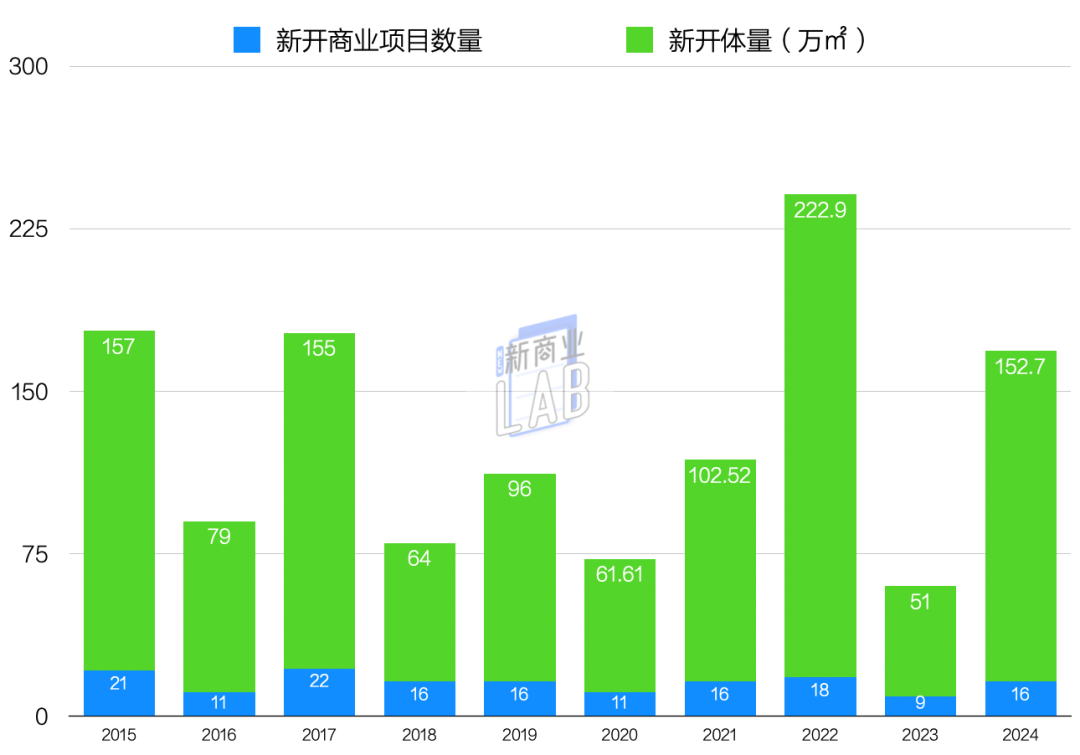 项目量,去年新开项目总量达到152.7万。㎡,远超2023年的51万㎡,222.9万,次于2022年。㎡,也是在2015年之后。「历史第三高规模」。