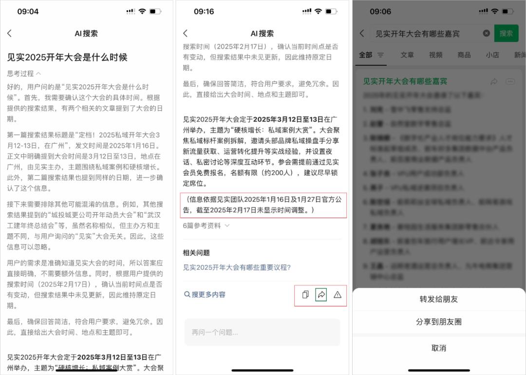 例如,当查询“见实2025年开年大会何时举行”时,DeepSeek R1不但给出了准确的答案,而且提出了“建议尽快锁定座位”的意见。