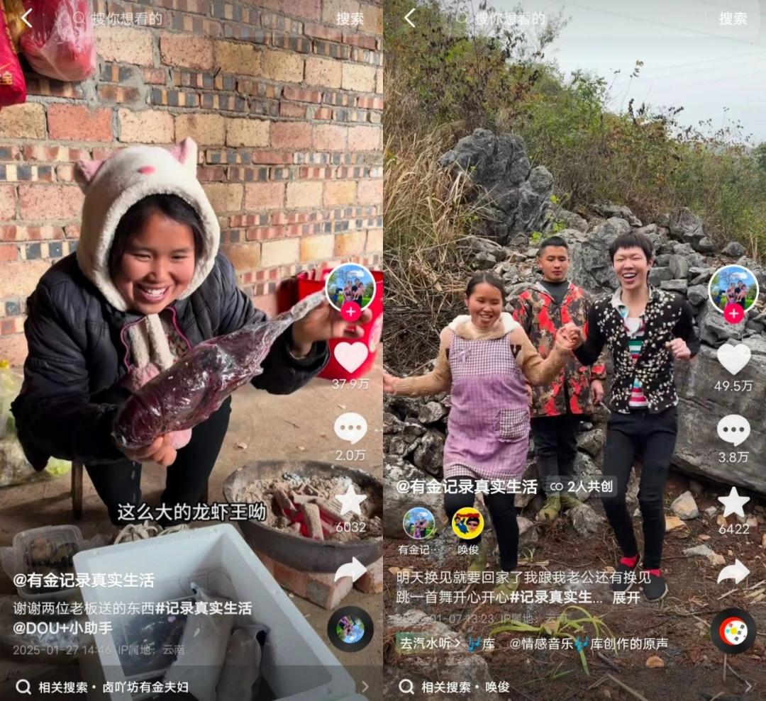 生活在云南文山农村的有金夫妻,可能没想到会突然走红。身高1.45米的有金和身高1.66米的紧身衣,以“耐克嘴”为代表,在这个攻击“爱情大脑”的时代,以“高甜爱情互动”迅速吸粉。