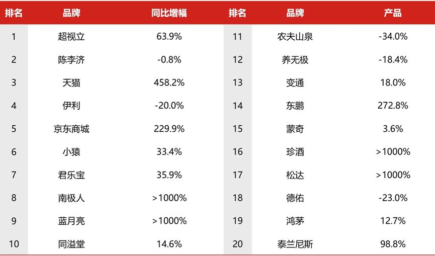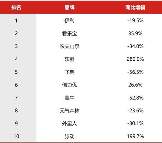 但特殊用途饮料,植物蛋白饮料其他类别的投资表现明显增加。机场和电梯海报是饮料行业增加广告营销的主要渠道,出版费用分别同比增加57.5%和6.6%。发布业绩突出的品牌包括君乐宝、东鹏、倍力优、脉冲、景田、佳果源等。