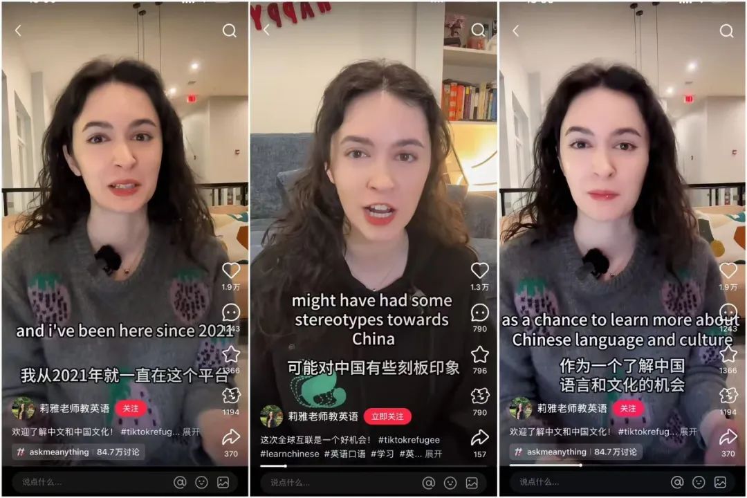 除了猫姐,@莉雅老师教英语 还发布了很多针对“TikTok难民”的引导视频。原来,她是一个美国人。她无疑有着与生俱来的“流量优势”。值得注意的是,卡思观察到,她的内容也包含了对外国朋友尊重中国文化、理解中国美的警告。与网络上一些盲目吹捧的人相比,这种理性的声音受到了更多人的喜爱。