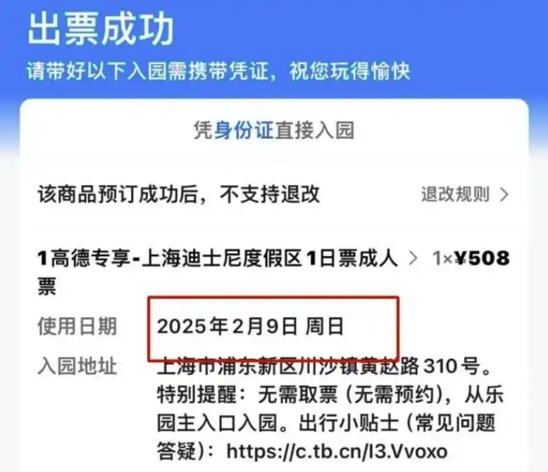 2月10日,一位名叫“吴彤”的网友发帖称,在高德地图上看到迪士尼门票优惠券后,她先给孩子买了一张儿童票。她选择的入场日期是3月2日,但付款后发现取票日期变成了2月19日。他说:“联系了平台客服,要求改签或退票,说让我等,现在还没有后续。这位网友说,还是不应该贪小便宜,也不应该在官方网站上买票。